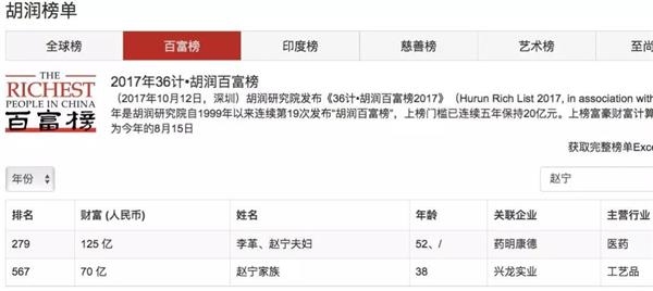 根据胡润百富榜,2017年,赵宁(家族)以70亿元的财富成为云南首富。十年之前,赵兴龙(赵宁父亲)家族以27亿财富成为当年新晋的云南首富。