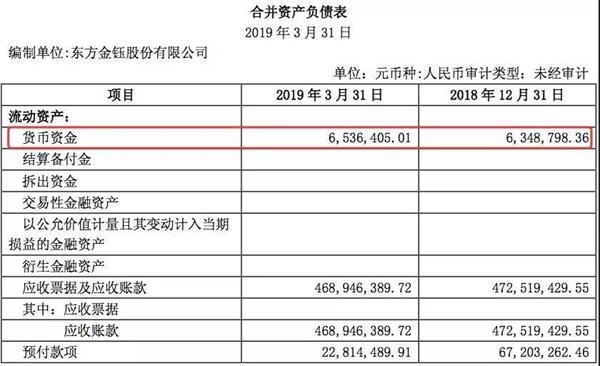 翻开今年一季度财报可以发现,东方金钰现在账上的现金只有653万元左右,而总负债高达94.51亿元,其中流动负债就有71.82亿元。