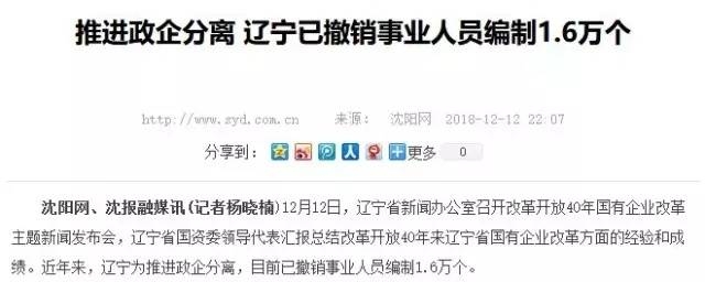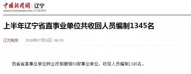 其中提到,上半年辽宁省直事业单位转企改制,撤销59家事业单位,收回人员编制1345名!