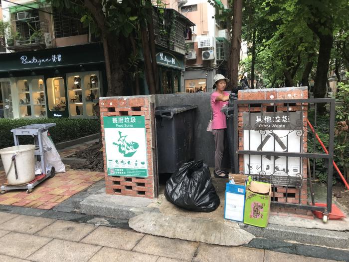 在体育西小区内,记者发现了一台智能垃圾分类回收机。该机器可以正常投递,但周边居民区和商区依旧采用传统的垃圾分类回收法。经保洁人员介绍,商区店家垃圾一直以来都分为厨余垃圾和其他垃圾两类倾倒,再由专门负责人将其运出整理。居民生活产生的垃圾也没有分类,全部混杂在一起。