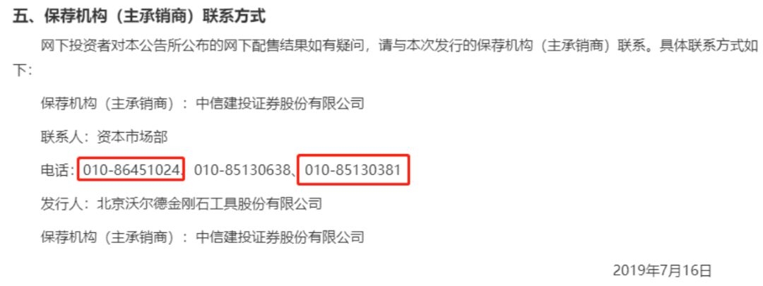 根据更正公告来看,海星股份中签结果公告此前公布的咨询电话为“010-86451024、010-85130381”,与中信建投资本市场部电话一般无二。例如,在中国卫通、沃尔德、新光光电等多只新股的保荐机构联系方式中,中信建投所留电话均包含上述两个号码在内。
