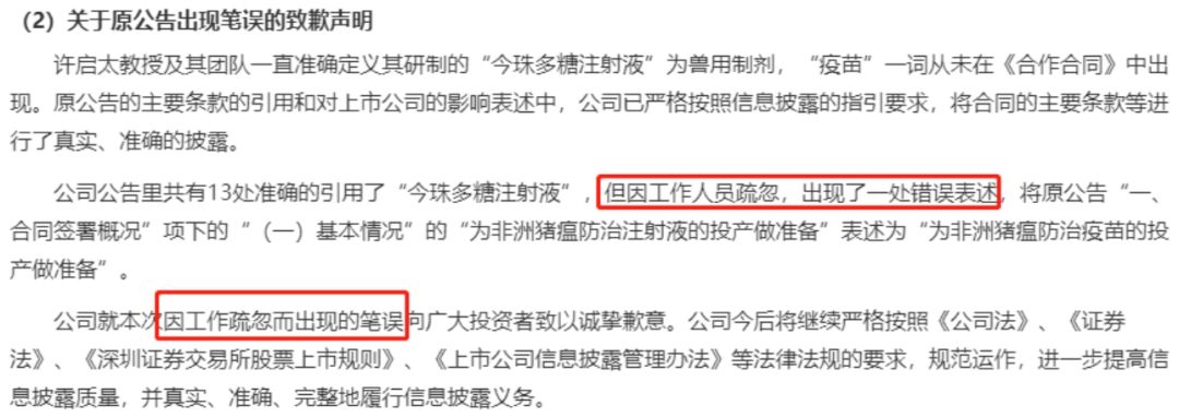 如果说上述公告并未造成重大影响,那么今年6月海印股份的“猪瘟神药”可称得上是“年度最贵笔误”。