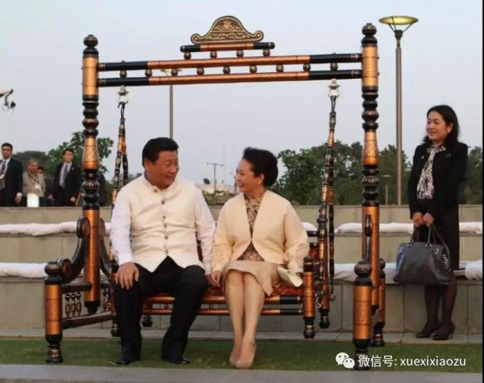 在印度,彭丽媛应印方之邀坐到秋千上,她试着荡了几下,便拍拍身边的空座,习近平很快坐上来,两人并肩荡起秋千。