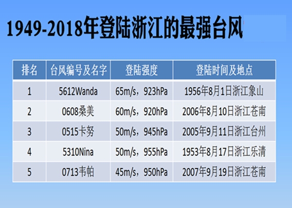 据中国天气分析师邵鹏介绍,按照目前的预报,“利奇马”很可能会跻身70年来登陆浙江最强台风的前五位。