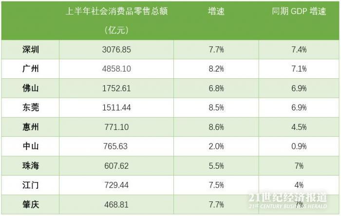 8月9日,21世纪经济报道记者梳理了上半年珠三角九市的社会消费品零售总额数据。作为中国区域经济版图中最发达的地区之一,珠三角九市的表现或可一定程度折射出当前的消费现状。