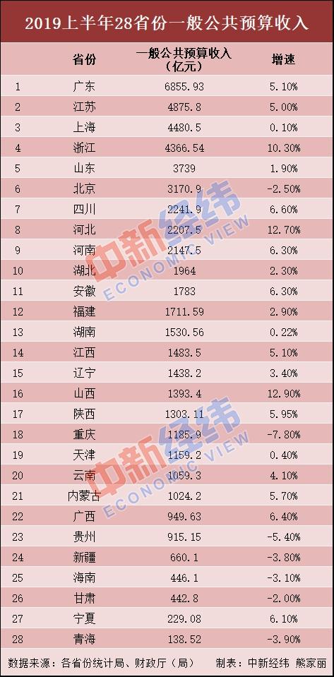 28省份上半年财政收入出炉:广东居首 15省增速超全国