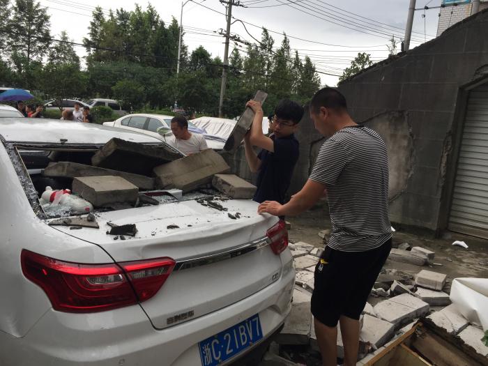 8月10日上午8点36分,温州某加油站围墙坍塌致出租车受损现场。中国太保查勘员刘君士第一时间对机盖、前保险盖和前档等几个受损部分进行定损,并帮助客户清理现场玻璃、石头等尖锐物体。