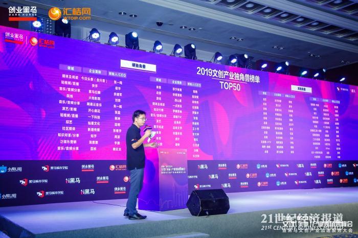峰会现场,创业黑马正式发布独角兽全国发展平台——中国产业独角兽俱乐部,并发布了《2019中国文创产业独角兽榜》。经过投资机构、产业媒体、咨询机构、政府协会等参与评议,最终,50家企业脱颖而出,入选《2019文创产业独角兽榜》。
