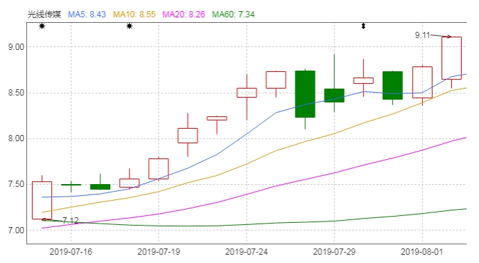 许多年后,沉溺于红绿K线图的文艺青年们,准会想起《哪吒》上映后的那些天,光线传媒如同“混天绫”一般凌厉的股价走势。