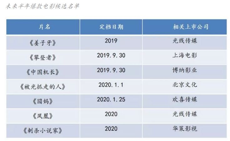 错过了《哪吒》不要紧,以后还有很多赚钱(投机)机会。(详见下表)