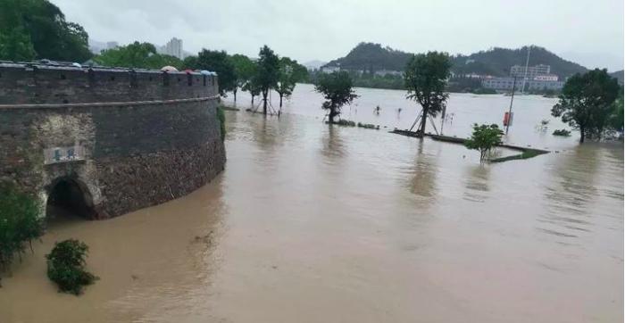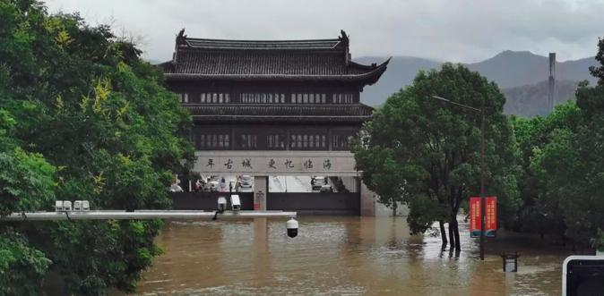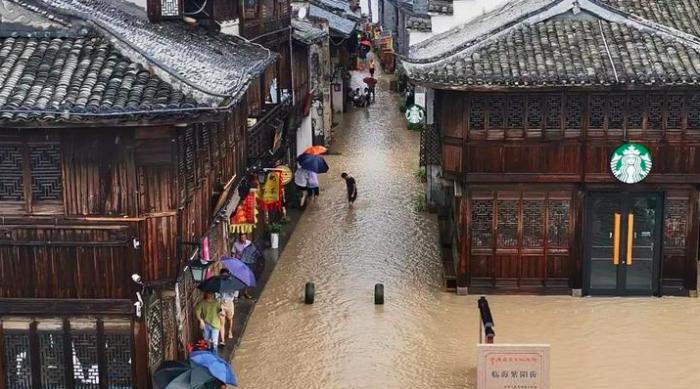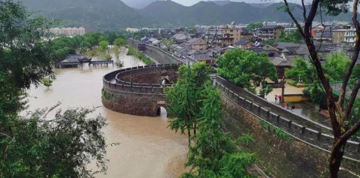 以下为临海古城被洪水围困的实拍图(图片来源 微信公众号:五月May):