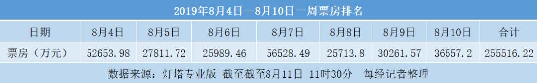 此外,本周票房也有两件大事情。灯塔专业版数据显示,8月7日,今年的七夕档拿下5.65亿票房,创造近五年新纪录。8月9日12:50,2019年年度累计综合票房突破400亿元,比2018年晚了4天。