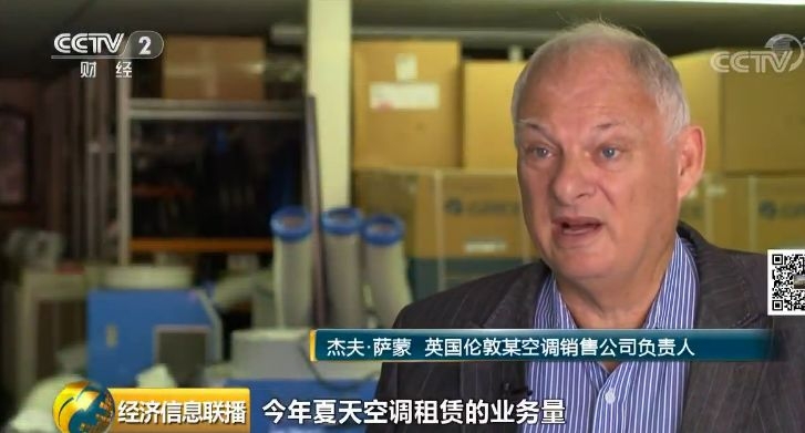 英国伦敦某空调销售公司负责人 杰夫·萨蒙:今年夏天空调租赁的业务量在2000到2500次左右,企业和家庭是我们主要的客户,我们2018年的业务量高达9000次。