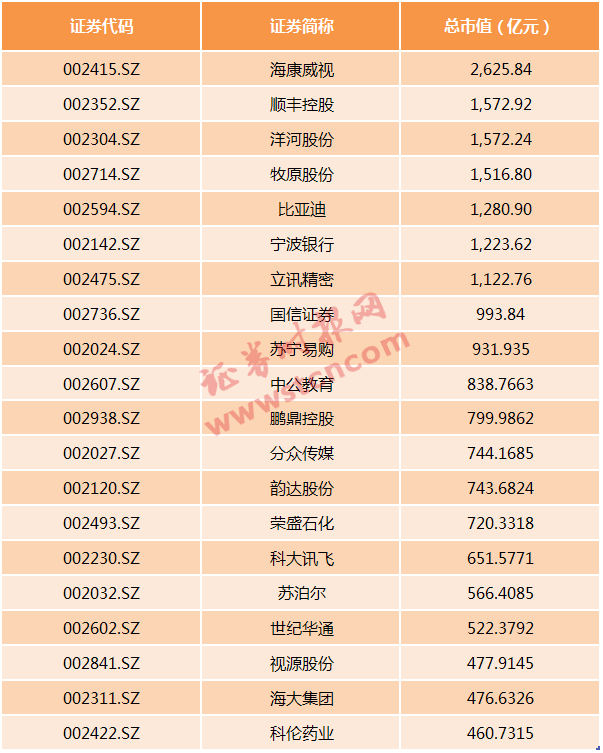 在中小板公司里面,目前市值最高的是海康威视,最新市值2625.84亿元,比中国广核发行市值高的目前还有顺丰控股(1572.92亿元)、洋河股份(1572.24亿元)、牧原股份(1516.80亿元)、比亚迪(1280.90)。