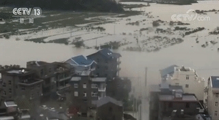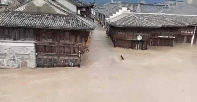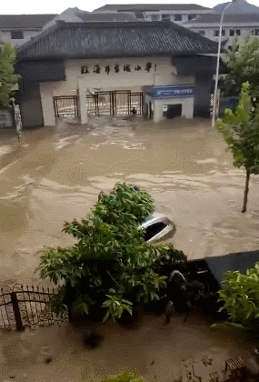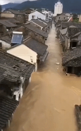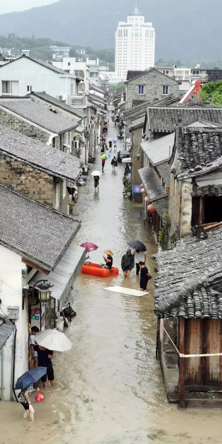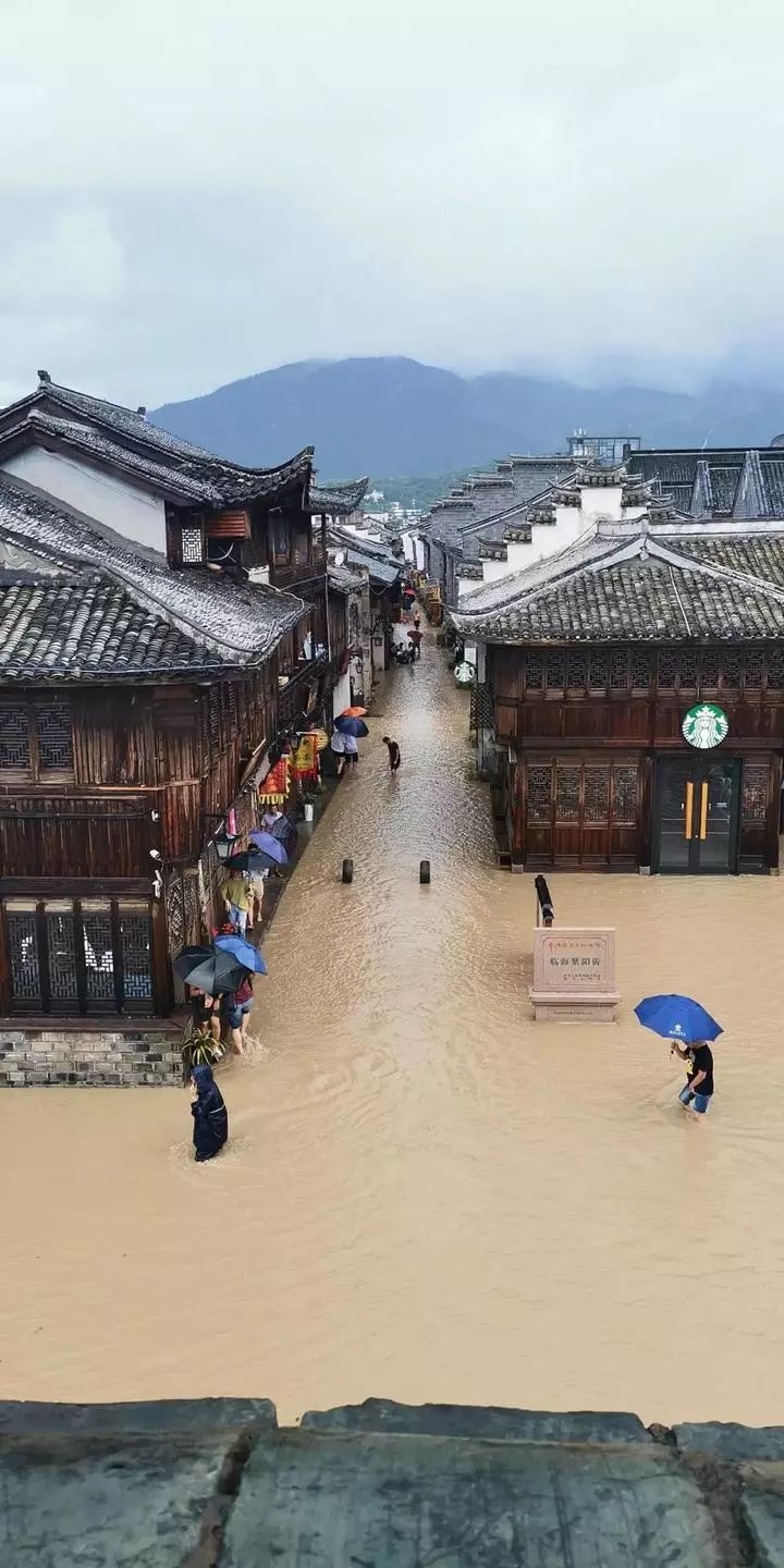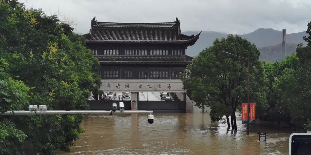 台风给浙江台州临海市带来了严重的内涝,临海市灵江流域发生流域性洪水。临海全市被淹,临海古城被洪水围困,积水最深处一度可达5米。