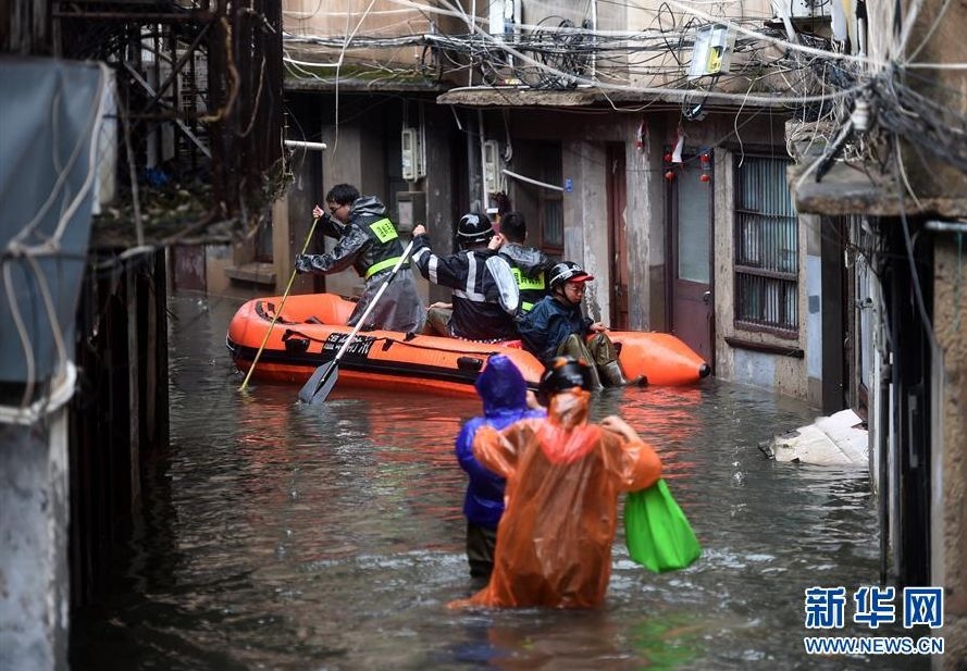 “利奇马”带来的强降水导致温岭市太平街道多个小区被淹,积水最深处近2米,上千居民生活受到影响。目前,太平街道已多方调集应急生活物资保障受灾群众生活需求。