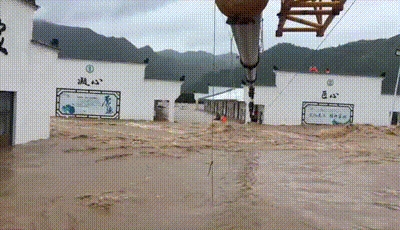 杭州市临安区岛石镇新桥村突发山洪,变电站几条输电线全部被冲毁,全镇断电。