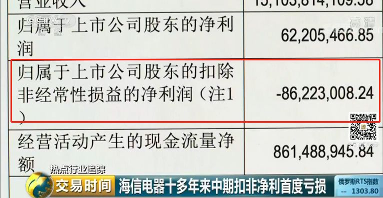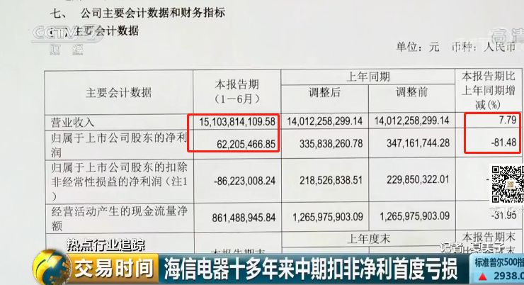 值得注意的是,上半年该公司扣非净利润出现了8622.3万元的亏损,这也是海信电器十多年来首次在半年报中扣非净利润出现亏损。