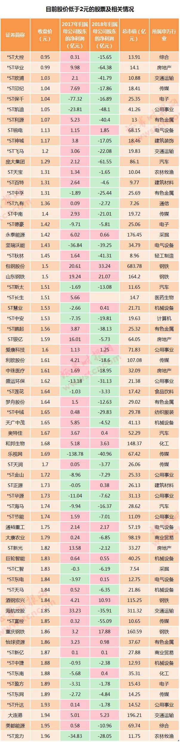 Wind数据显示,除掉*ST华信,截至今天收盘,A股市场还有66只股票股价低于2元,其中*ST大控已经连续7个交易日收盘价低于1元;*ST华业连续12个交易日收盘价低于1元。另外*ST欧浦、*ST印纪、*ST保千、*ST凯迪、*ST利源等股票离1元面值也仅一步之遥。