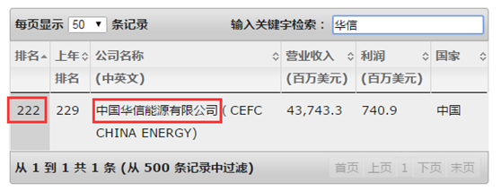 根据2017年财富世界500强榜单,中国华信能源有限公司位于当年世界500强第222位。