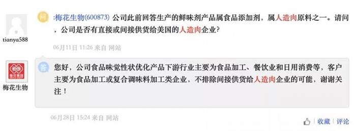 公司还于7月29日在互动易上透露,双塔食品已将其豌豆组织蛋白和豌豆拉丝蛋白样品寄给了“珍肉”公司。