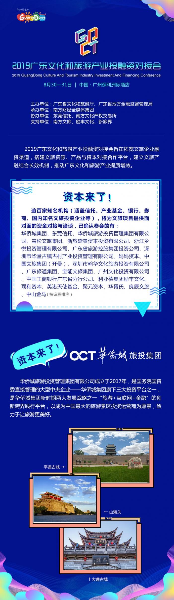 8月31日,2019广东文化和旅游产业投融资对接会在广州保利洲际酒店约定您!