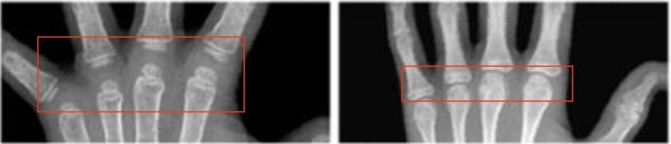 一是,依据骨间距。间距越大,生长的空间越大,骨龄越小。