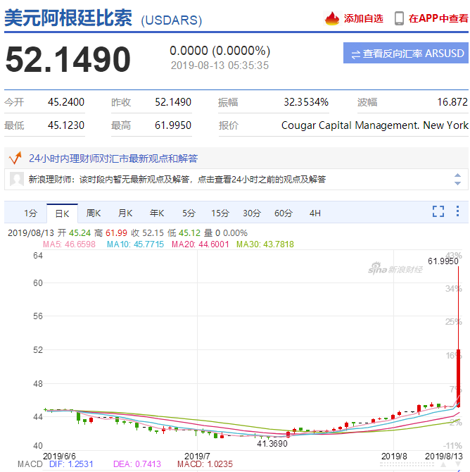 从人民币角度看,新浪财经数据显示,周一人民币兑阿根廷比索汇率涨至7.3885比索,较前收盘价(6.4060比索)升值15%。今年以来,人民币兑阿根廷比索已经累计升值了35%。