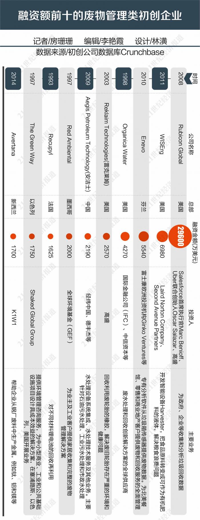 21世纪经济报道记者统计美国初创公司数据库Crunchbase、创投数据库Pitchbook等发现,目前在全球废物管理类初创公司当中,融资额排名前10的初创公司中,有4家为美国企业,其他初创企业在芬兰、墨西哥、法国、以色列等,上海有一家。