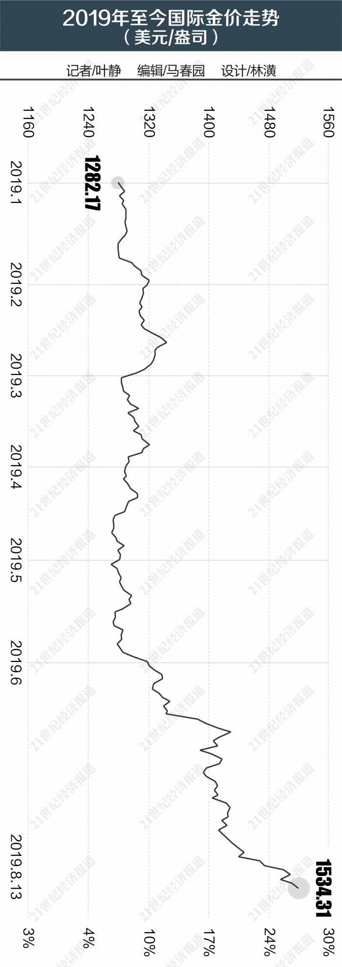中期研究院高级研究员汤林闽在近期的研究报告中认为,本轮金价上涨的热潮由中美经贸摩擦再生波澜引起,前期的主逻辑是国际经贸局势趋紧产生的避险情绪高涨,次逻辑是国际经济趋黯,特别是美国弱势经济数据连出引发的担忧,以及全球央行转鸽产生的宽信用环境和预期,另外地缘政治热点升温也有推高金价的作用。由国际经贸问题引发的避险情绪在持续了一段时间后,目前有所削弱,对金价的支撑力度也随之降低;但对国际经济特别是美国经济走弱的担忧接续了避险情绪对金价的支持,成为促进金价再次向上突破的主要原因,此外阿根廷、意大利政局动荡,为本就深陷黯淡预期的国际经济注入了更多不安。此外,各种地缘政治热点也不断撩拨市场脆弱的神经。所有这一切形成合力,促使金价屡创新高。