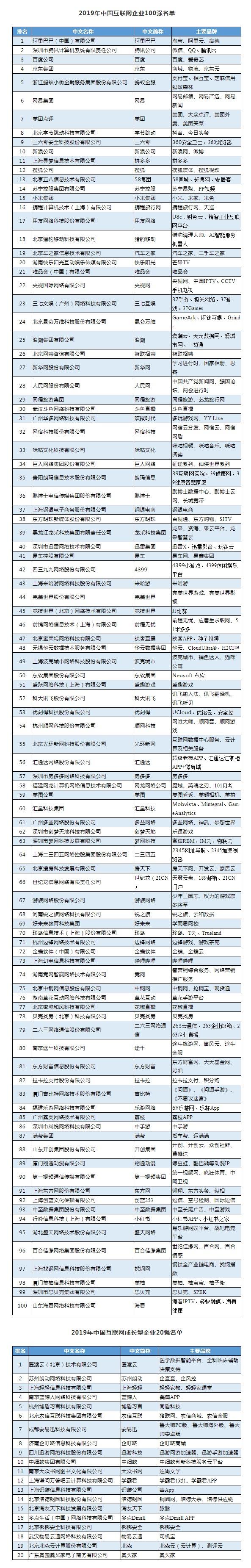 互联网前十名单,阿里占据两席。