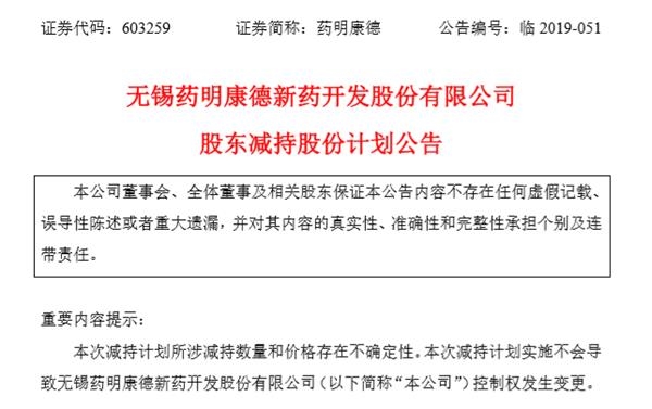 药明康德7位股东又要减持100亿!1个半月51家医药股在减持