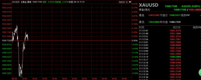 贸易摩擦再度出现缓和迹象,8月14日早盘,国际黄金价格波动加剧。