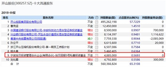 原华夏明星基金经理胡建平创立的拾贝投资,是业内新晋的百亿私募机构,他擅长绝对回报、深入研究做组合投资,多年练就一身敏锐的选股功夫、灵活稳健的投资手法。在今年二季度他对开山股份持股不变,拾贝回报5号私募投资基金持有488.5万股,位列第九大流通股东。