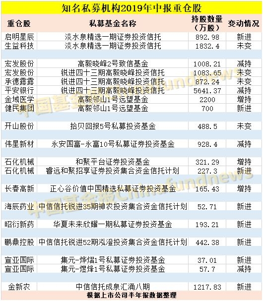 多家知名私募持仓曝光