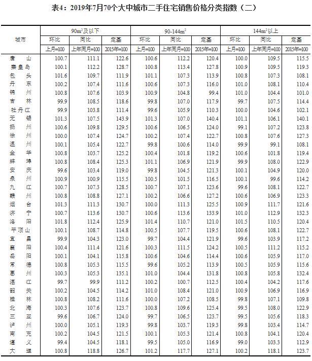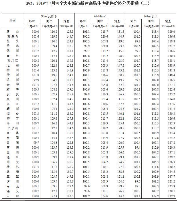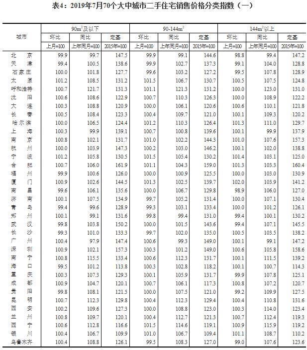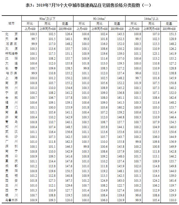 8月15日,据国家统计局网站消息,2019年7月份70个大中城市商品住宅销售价格变动情况公布。