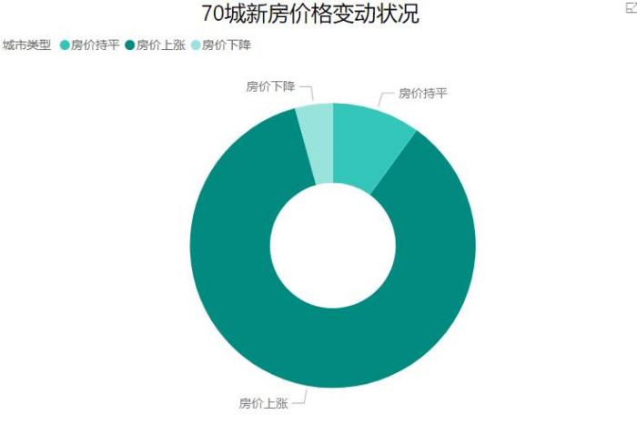 70个大中城市中,60座城市新建商品住宅售价指数环比上涨,上涨的城市数目较上月减少3座。天津、上海、南充3城新建商品住宅售价指数环比回落,深圳等7城环比持平。具体来看,一二线城市新建商品住宅和二手住宅销售价格环比涨幅略有升降;三线城市涨幅均与上月相同。