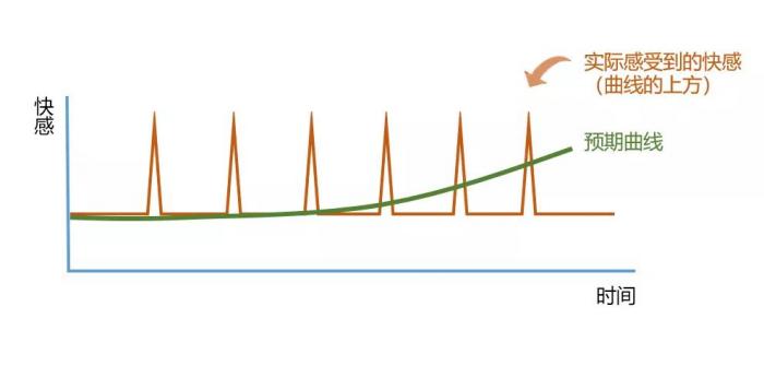这个差值越大,对奖赏回路的刺激就越大,激发出来的多巴胺浓度就越高,从而,我们感受到的快乐就越强烈。