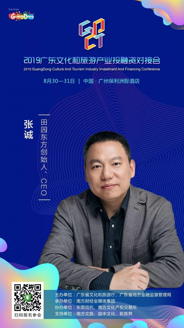 大咖来了丨田园东方创始人兼CEO张诚确认出席2019广东文化和旅游产业投融资对接会