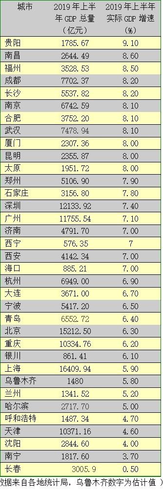上半年大中城市GDP排行榜:贵阳增速第一南昌第二,大批明星城市“失色”