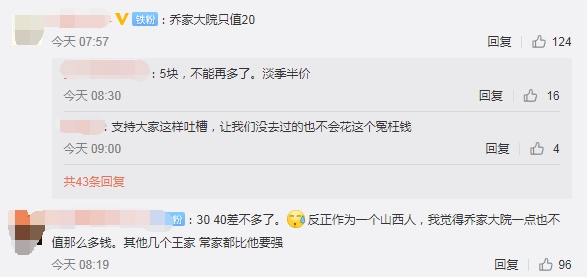 除了过度商业化以外,争议最多的则是门票价格。乔家大院景区官网2019年8月15日显示,景区整改前全票价为138元/人次,为5A景区故宫博物院旺季票价60元/人次的两倍多。