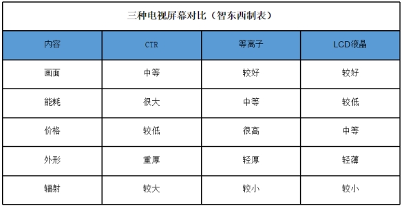 三种屏幕比较除了内容和系统,硬件对于互联网电视来说也至关重要。在经历了CTR屏和等离子屏之后,液晶屏在互联网电视诞生前得到了大规模的应用,液晶屏具有尺寸大、重量小、能耗低等特点,最为重要的是,液晶屏的价格比等离子屏要便宜不少,这也降低了互联网电视的成本。
