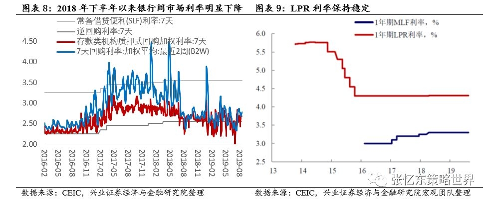 ——以前,贷款定价机制主要锚定贷款基准利率,银行间利率向实体传导效率较低。因此,2018年下半年以来,我们看到虽然银行间市场利率有较大幅度下降,但是LPR并没有明显变化,人民币贷款加权平均利率也只是小幅微降。