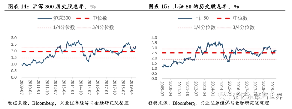 ——上证50、沪深300指数的股息率当前值分别为2.7%和2.3%,接近或超过2009年7月以来的3/4分位数上方。