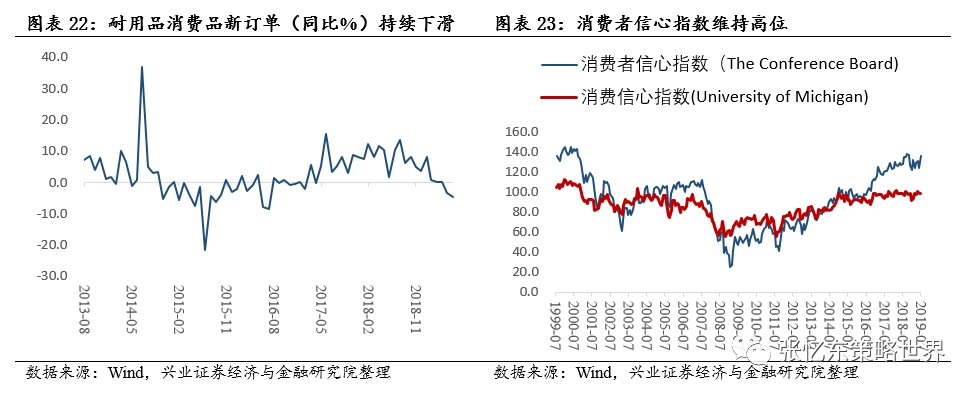 对通胀的分析从非周期性转到周期性分析,一个重要的落脚点是短期供需问题。反映企业端供给的耐用品新订单显示投资需求低迷,反应消费需求的消费者信心指数则保持在高位水平,未来菲利普斯曲线复苏的内在逻辑可能将持续。