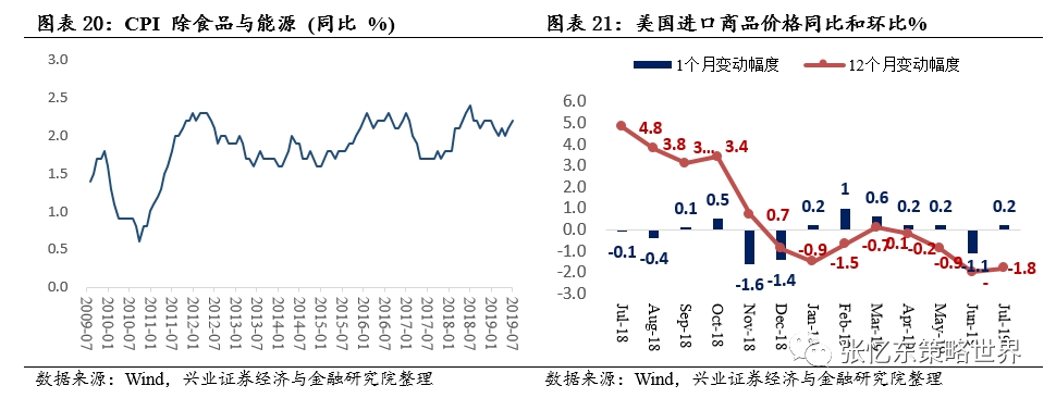 我们的判断逐步被验证,第一朵乌云演化为狂风暴雨。1)美国关键收益率曲线10年期国债和2年期国债收益率出现倒挂,预示经济衰退概率进一步提高。2)7月美国核心CPI同比增长2.2%,环比上涨0.3%,同比涨幅触及6个月最高,超出市场预期中值。美国劳工局对7月物价上涨评估为:“广泛上涨”。