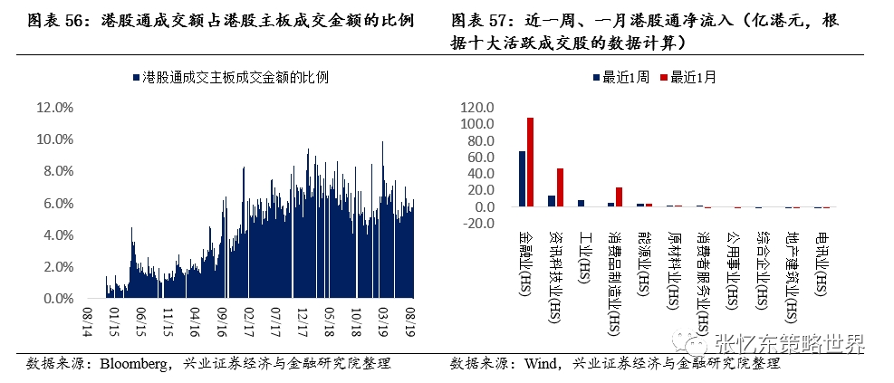 截止本周五收盘,AH溢价率为131%,高于上周的AH溢价率(130%),且高于2017年以来的3/4位数。受AH溢价回到历史较高水平影响,港股通连续14周净流入,本周净流入182.45亿人民币,自开通以来累计买入成交净额达9338.33亿人民币。从十大活跃成交股的数据来看,最近1周南下资金主要流向金融、科技和工业。