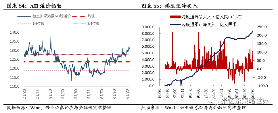 2.2.3、港股市场综述:1)恒指和国指出现小幅下跌(跌0.8%和0.3%),除电讯和地产建筑(涨0.8%和0.3%),其余行业均下跌;2)市场情绪维持谨慎。恒生波指为24.5,高于上周20.8;周平均主板卖空成交比本周降为15%。3)港股通连续14周净流入,本周净流入168.05亿人民币。4)估值:恒指数和国指当前PE TTM分别为10.3和8.2倍,均低于2000年以来的1/4位数;AH溢价率较上周上升为131%,当前恒指股息率为3.8%,配置价值进一步凸显。