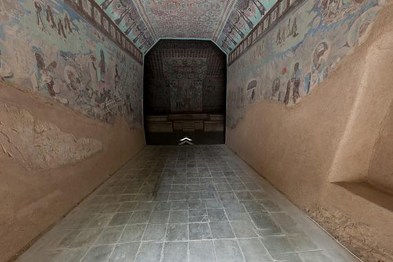 △第61窟开凿于五代时期,是莫高窟规模最大的洞窟之一。学者推测第61窟是五代晚期河西归义军节度使曹元忠及夫人开凿的功德窟。这个洞窟的供养人画像保存较为完整,为研究古代敦煌的历史和古代妇女的服饰等提供了生动的图像资料。(敦煌研究院提供)
