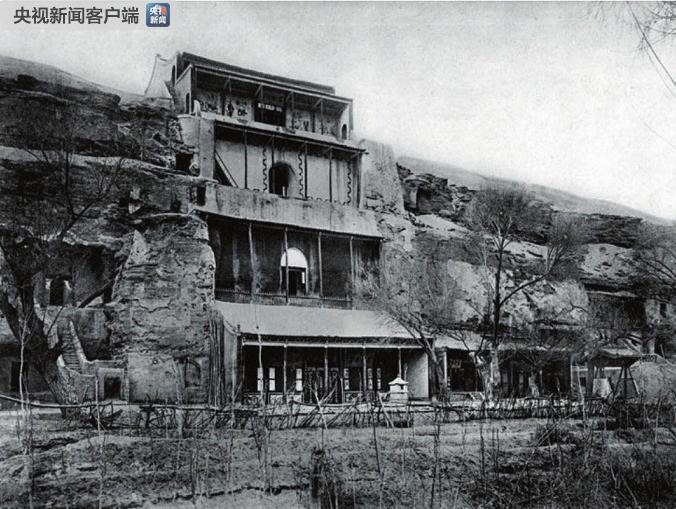 △伯希和于1908年拍摄的莫高窟96窟外景。(敦煌研究院提供)